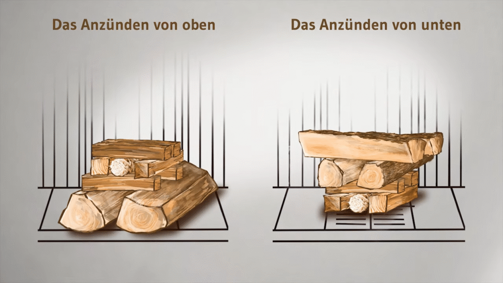 🔸 Von oben anzünden (für Öfen ohne Rost)